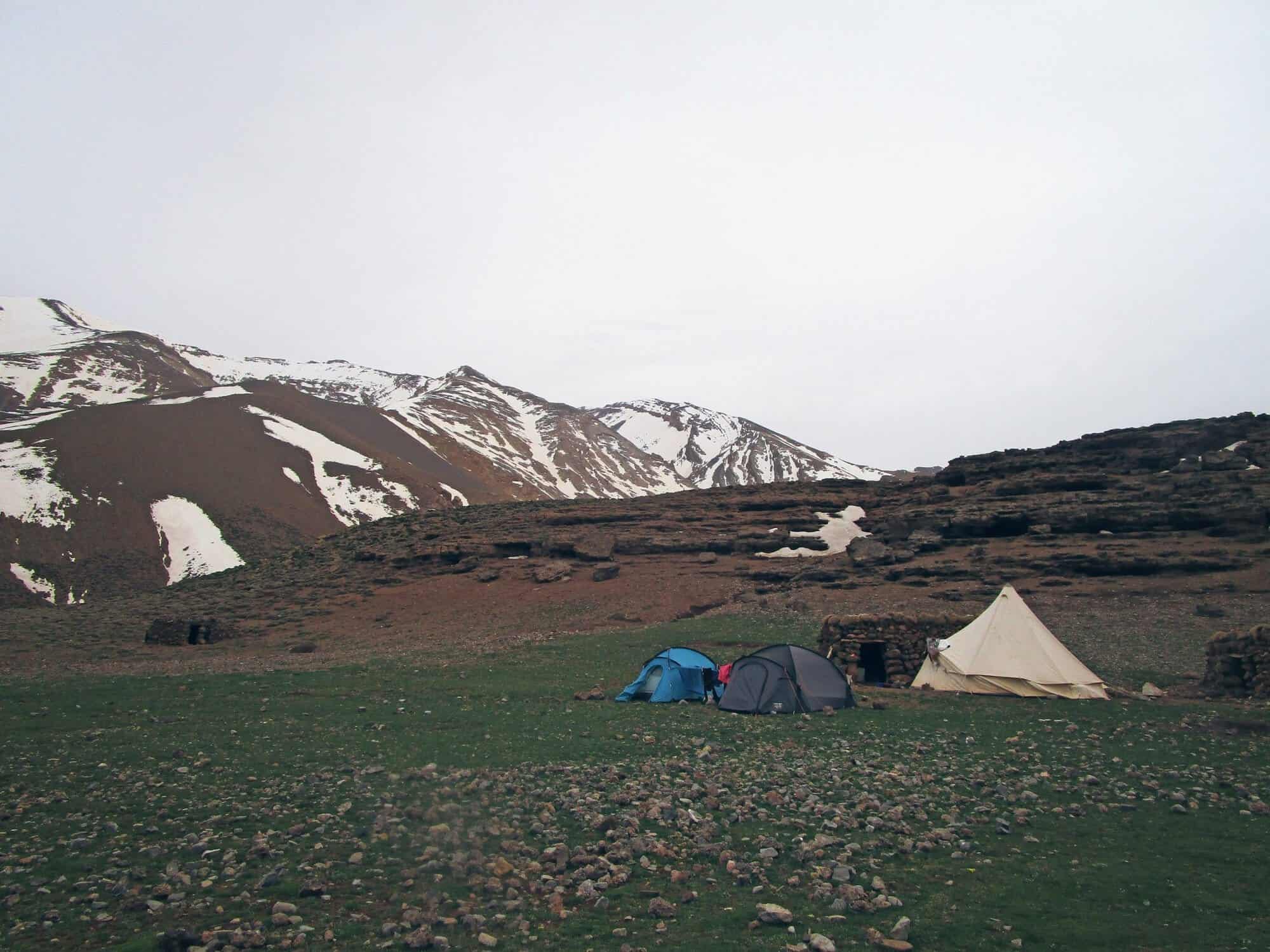 Etapa bonita y sencilla de aproximadamente 6 horas. Cruzaremos el collado de Ait Imi y disfrutaremos de los paisajes del «valle feliz» y las vistas que rodean todo el lago. Llegada a al pueblo donde pasaremos la noche en el campamento. Cena incluida.