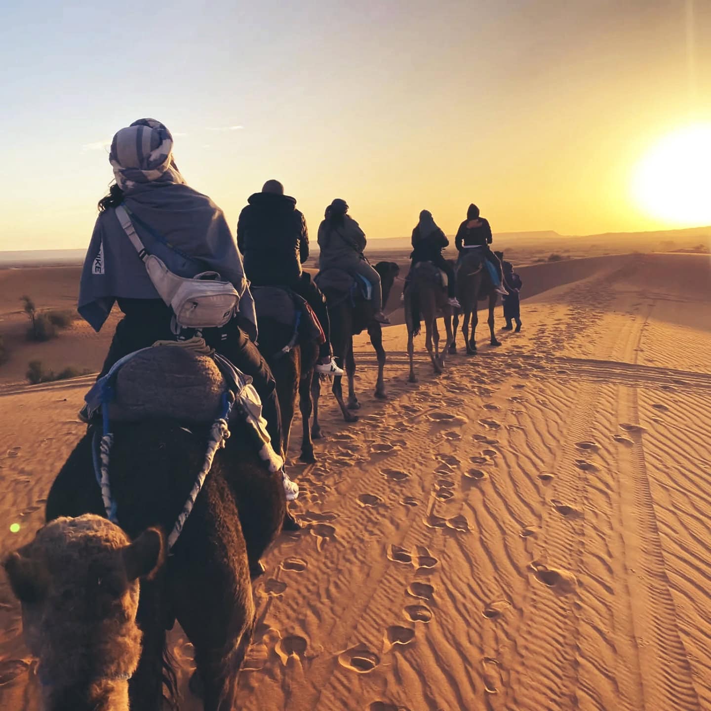 Amanecer en las dunas: Disfrutaremos del amanecer desde la cima de las dunas y regresaremos al campamento en dromedario.